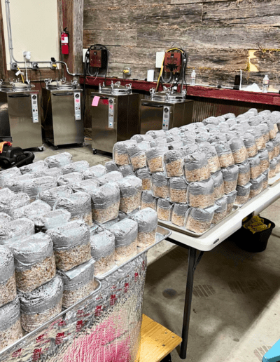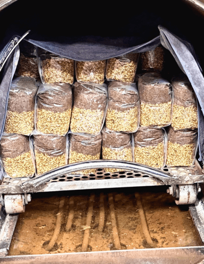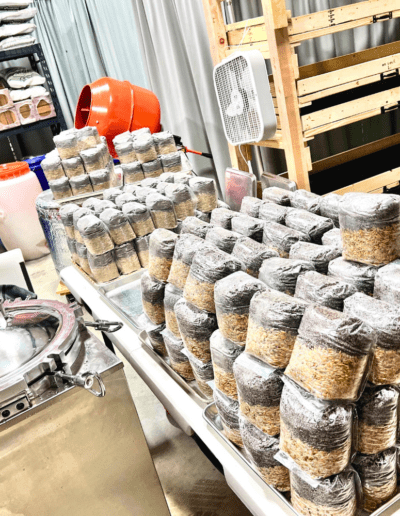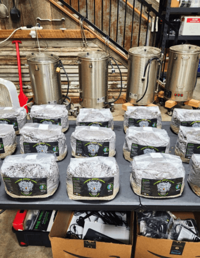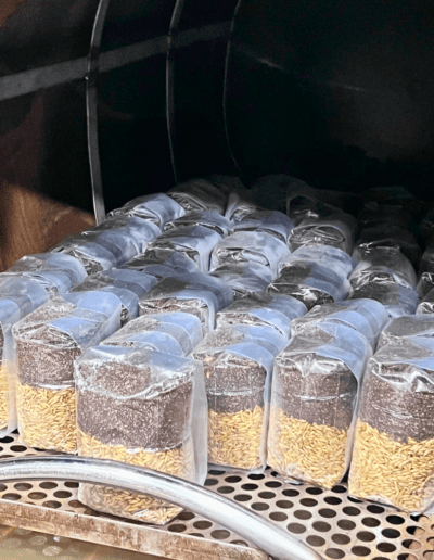 They absolutely love our proprietary blend of Coco Coir, Gypsum, Vermiculite (CVG), and oats.Once we nailed the perfect ‘Mushroom Food,’ the next challenge was preparing it correctly. Improper preparation could lead to feeding the dreaded ‘Green Monster’ (aka green mold), so we focused on mastering this crucial step.